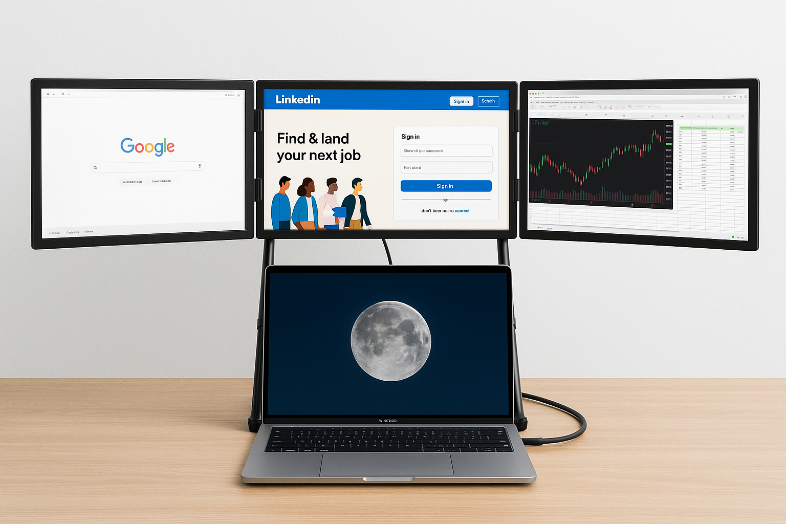 Unleash maximum screen real estate with the Triple Monitor Extender, a 3-panel monitor expansion engineered for elite users. Whether you're presenting to clients, crunching code, or building a brand, this setup turns your laptop into a panoramic powerhouse.